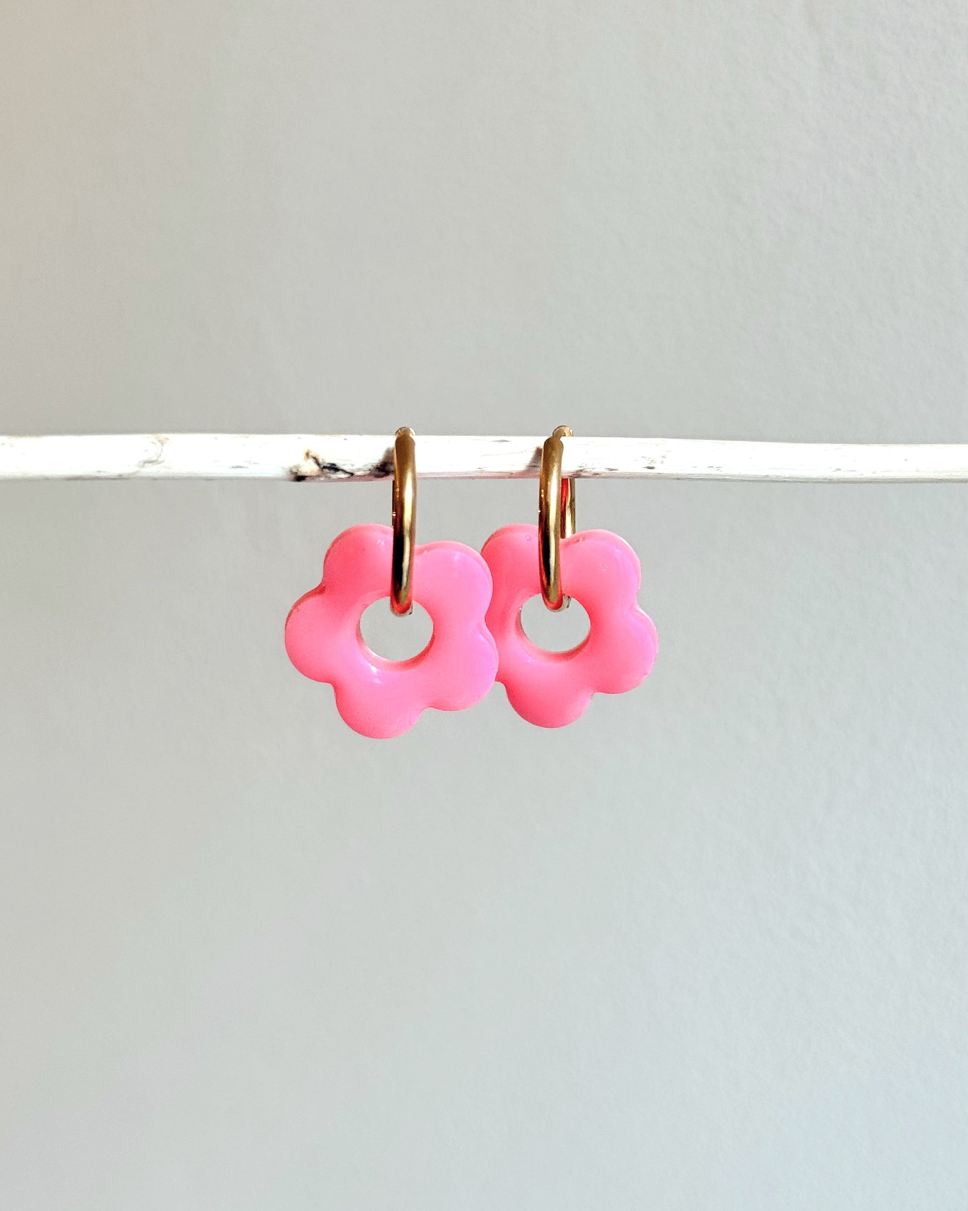 Créoles MOYENNES fleurs - rose pastel