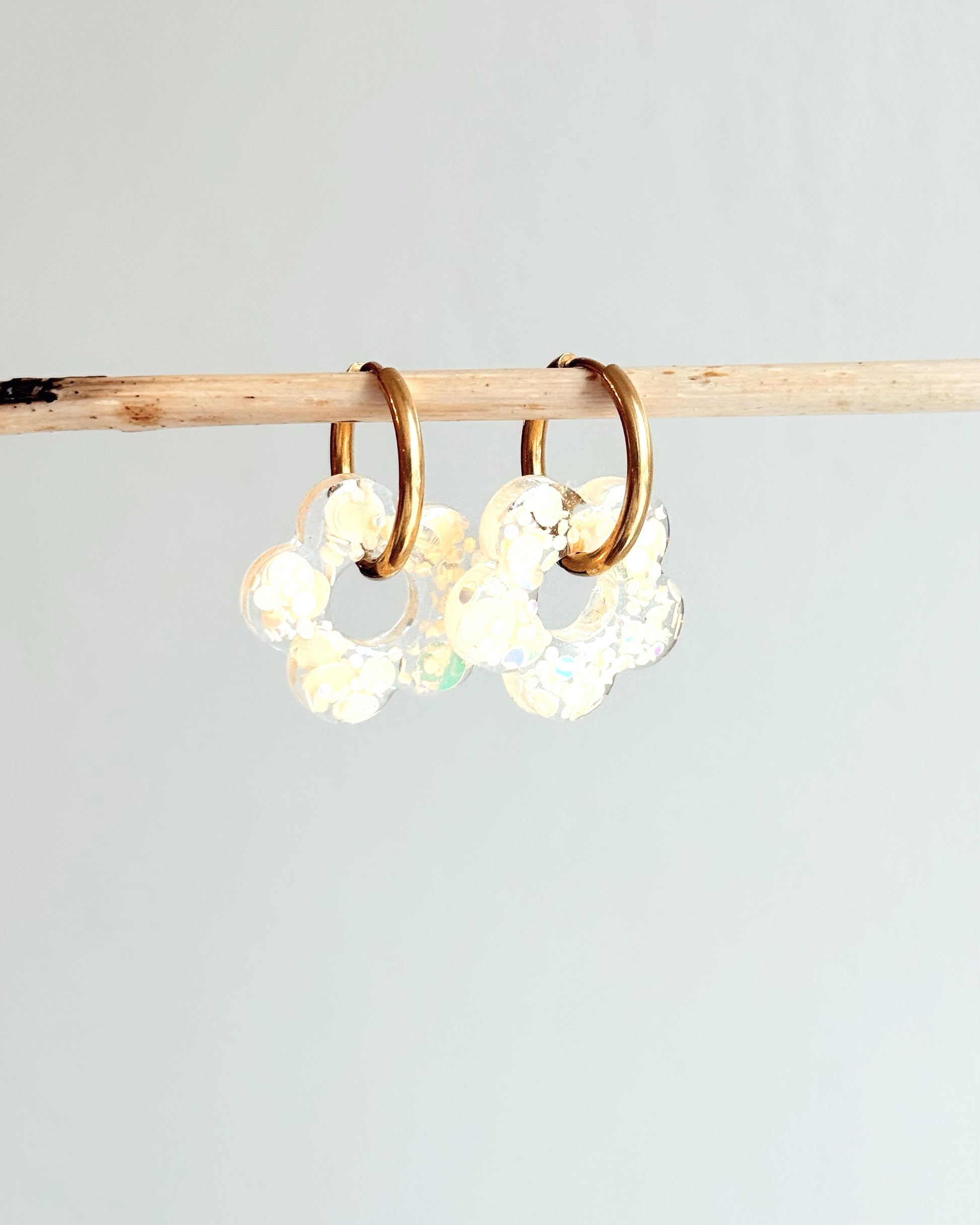 Créoles MOYENNES fleurs - beige pop