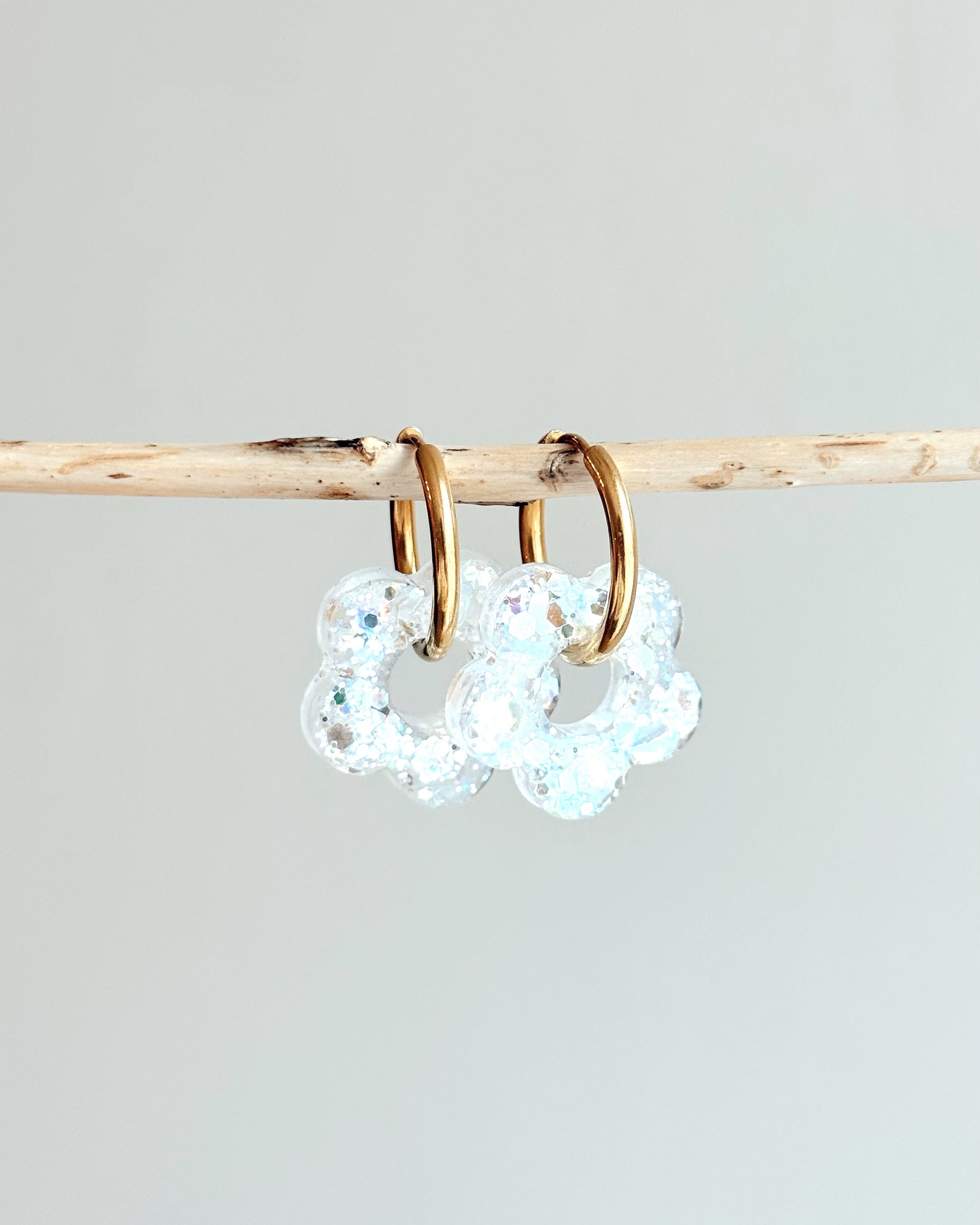Créoles MOYENNES fleurs - blanche neige