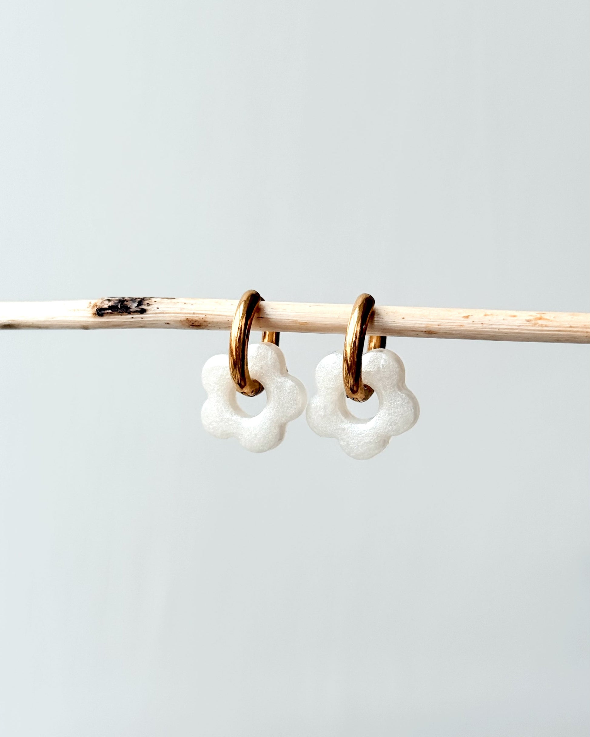 Créoles petites fleurs - blanc nacré