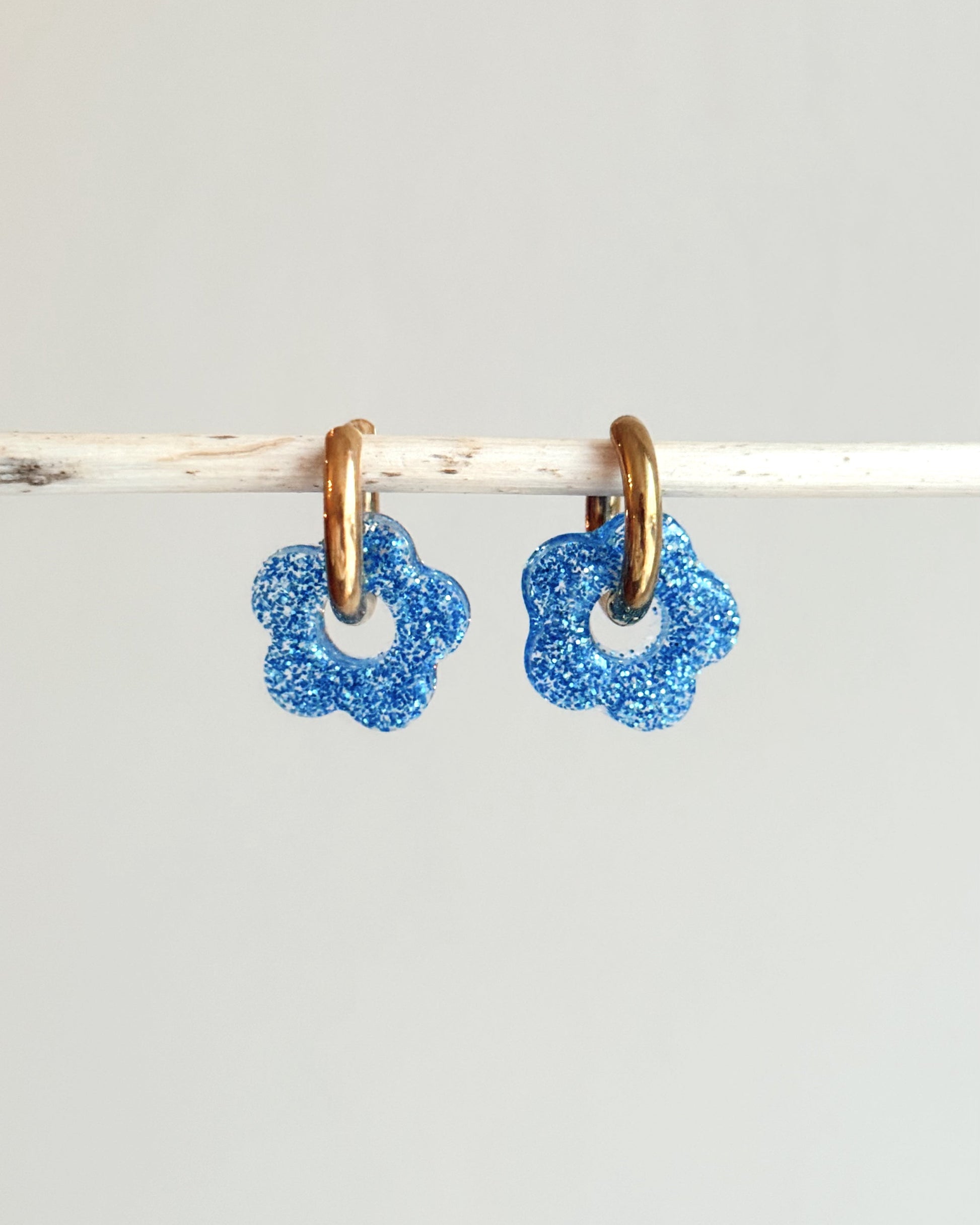 Créoles petites fleurs - bleu fin