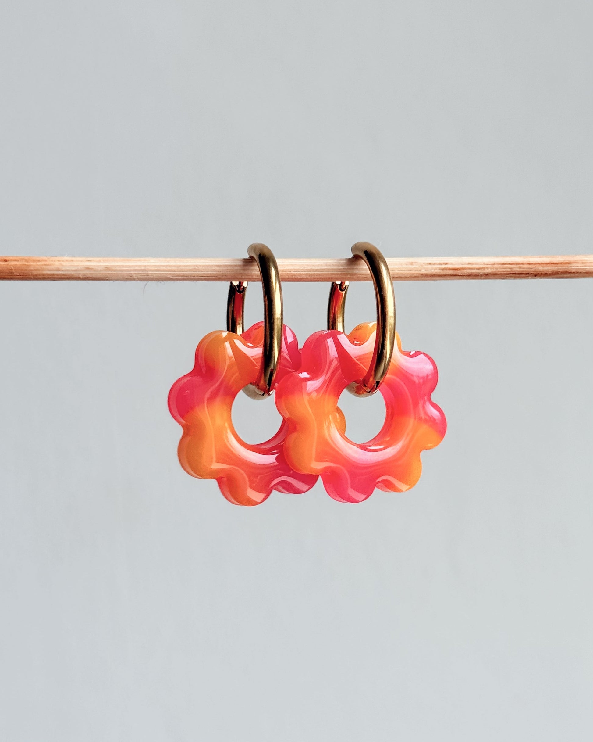 Créoles SUNFLOWER - marbrée orange & fuchsia